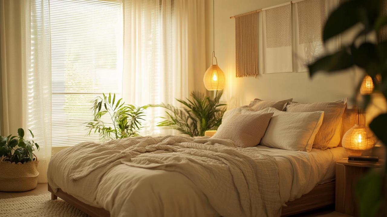 L'éclairage doux représente la clé d'une chambre véritablement relaxante. Plutôt que de dépendre d'une seule source lumineuse centrale et agressive, il convient de multiplier les points lumineux discrets. Les lampes de chevet offrent une lumière ciblée et modulable, idéale pour la lecture avant le coucher. Les bougies créent une atmosphère intimiste et chaleureuse grâce à leur lumière vacillante qui apaise naturellement l'esprit. L'éclairage indirect, placé derrière des meubles ou orienté vers les murs, diffuse une lueur douce qui évite les contrastes brutaux et les ombres marquées. Cette stratégie d'éclairage permet de créer différentes ambiances selon les besoins du moment, de l'activité diurne à la préparation nocturne au sommeil.
